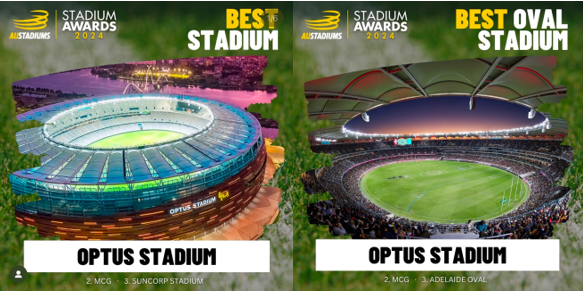 The fans have spoken and Optus Stadium are proud to share we have taken out two awards in the 2024 Austadium Awards: