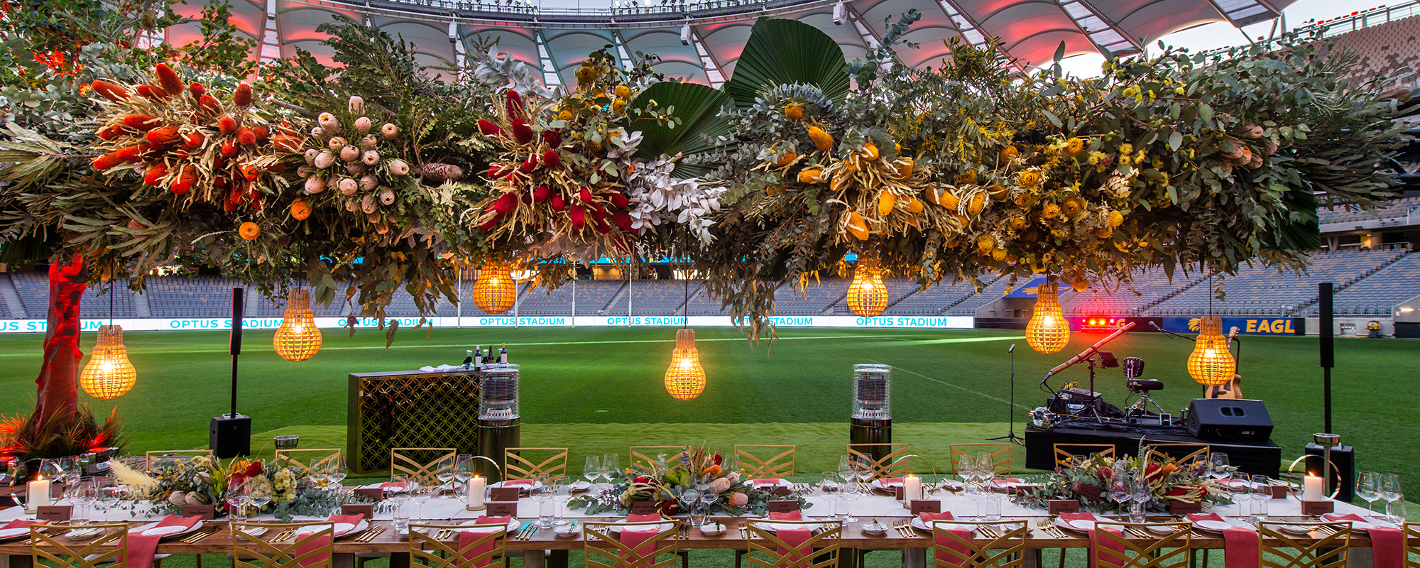 Make your next ball, banquet or gala dinner one for the ages! Give your guests a spectacular evening with an award-winning dining experience with stunning views across the playing surface or out towards the Perth city skyline from one of Optus Stadium’s premium function rooms.