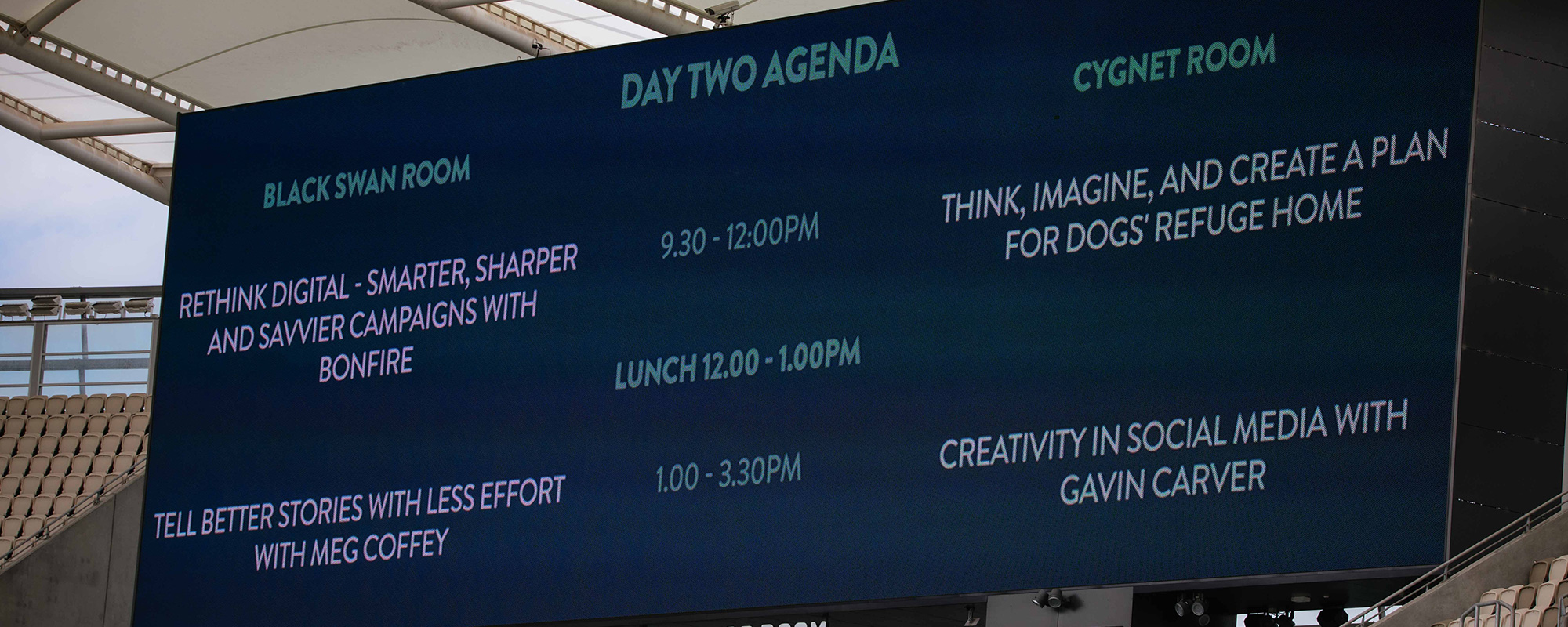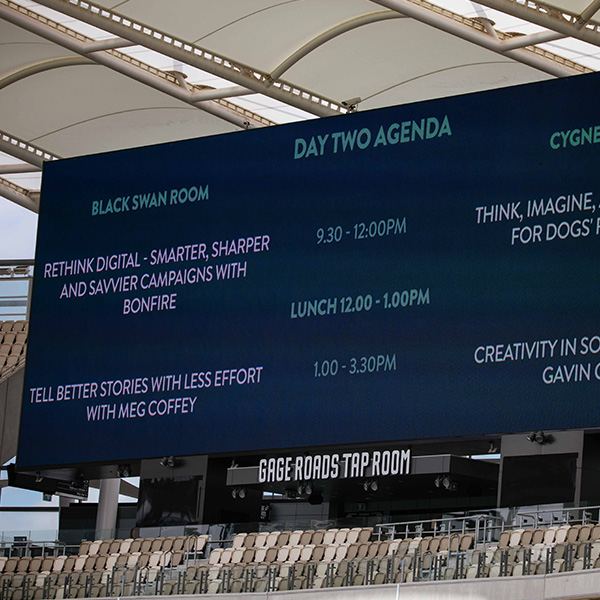 You can utilise the largest super screens in Western Australia for your conference logos. You can even host your plenary in the biggest theatre in Perth – the seating bowl – and build a stage directly in front of your guests for maximum engagement.