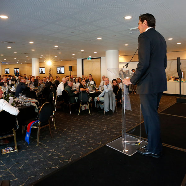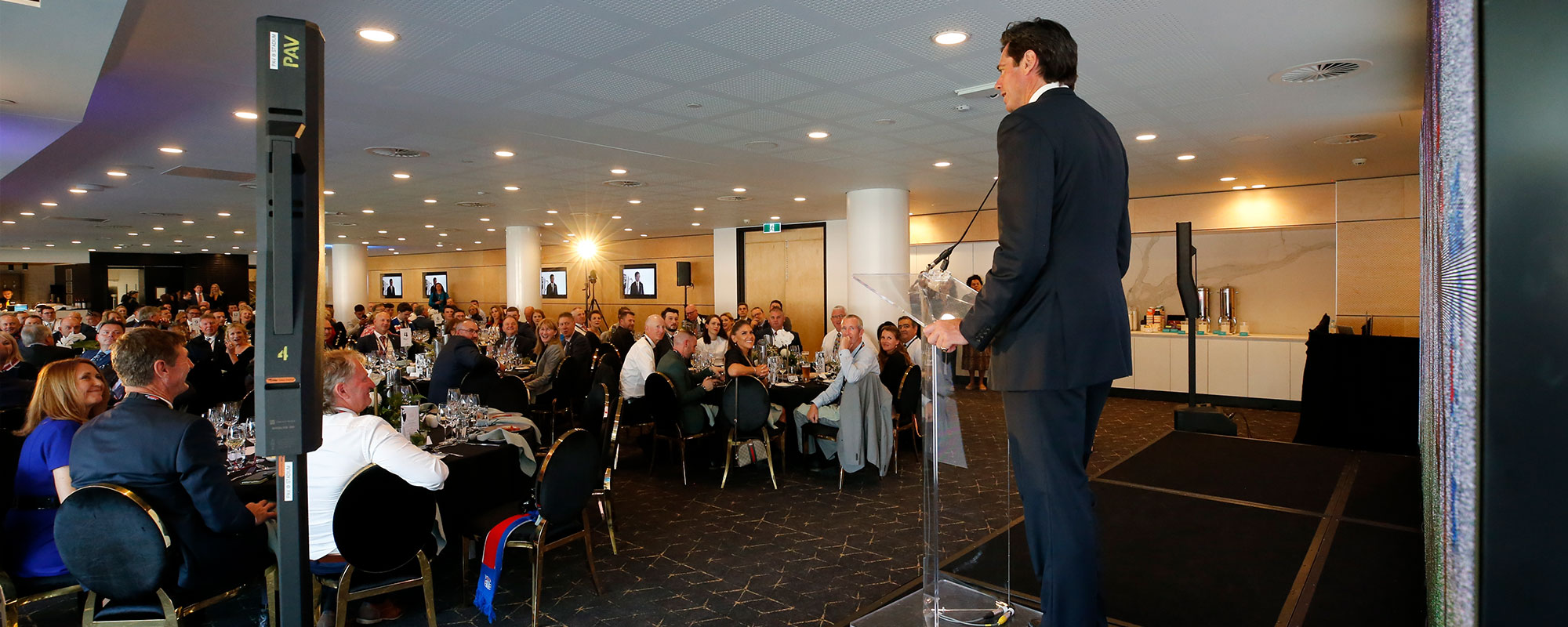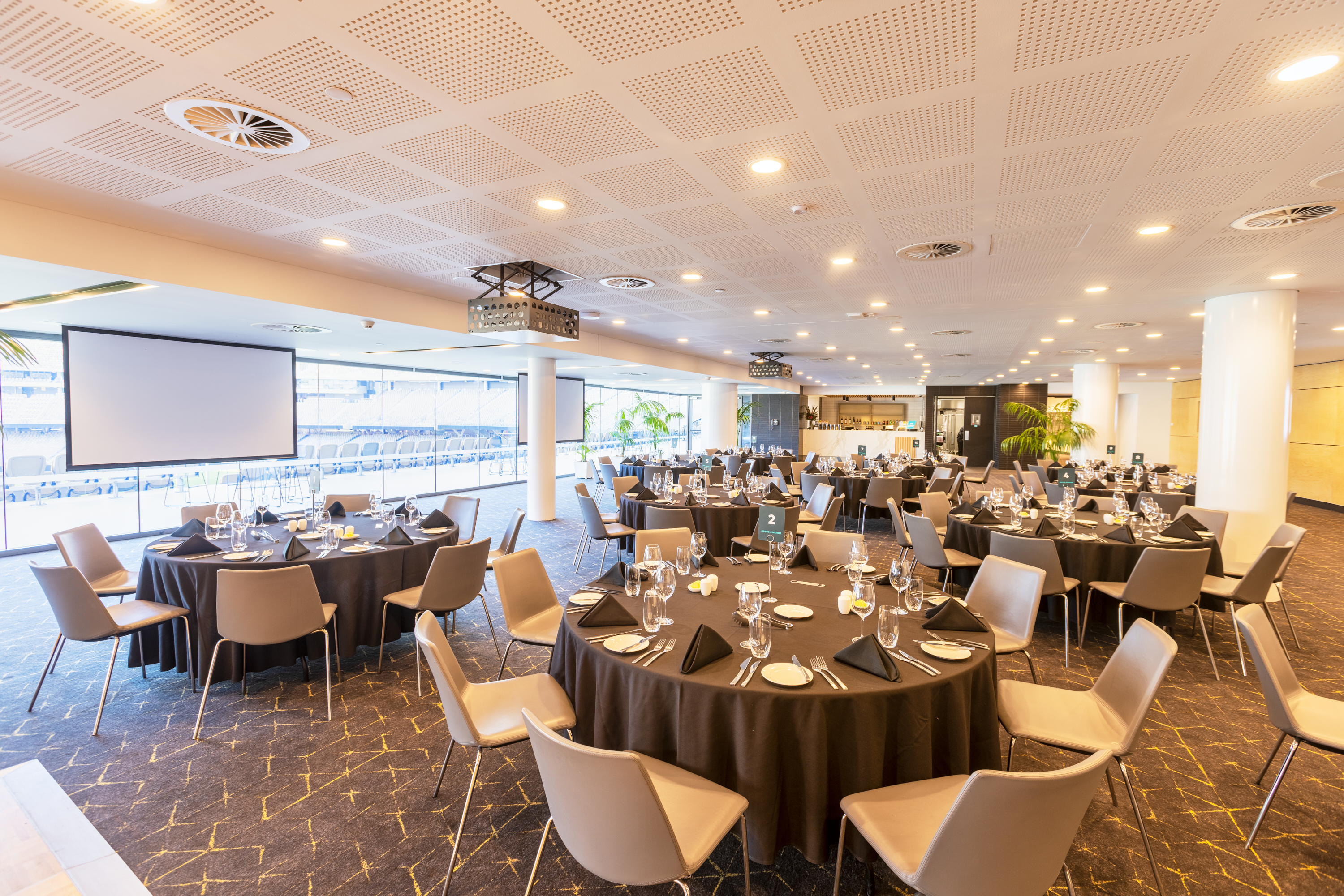This high-end setting offers playing surface views and is equipped for various function types, including business lunches or breakfast briefings.
