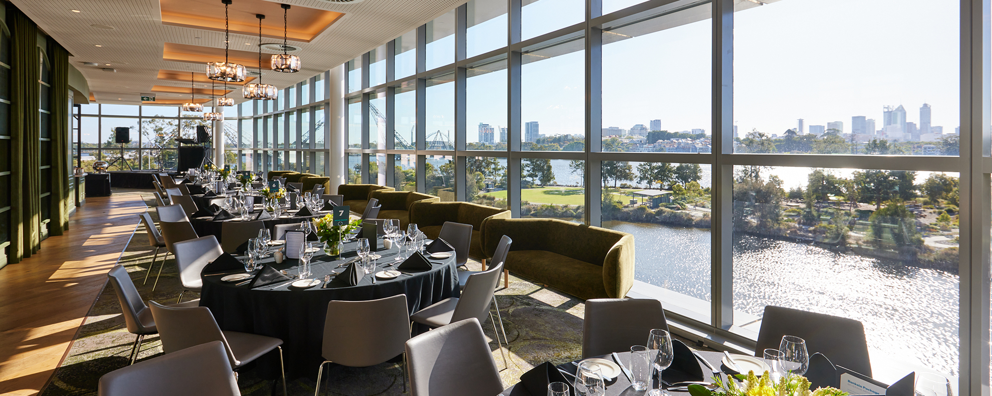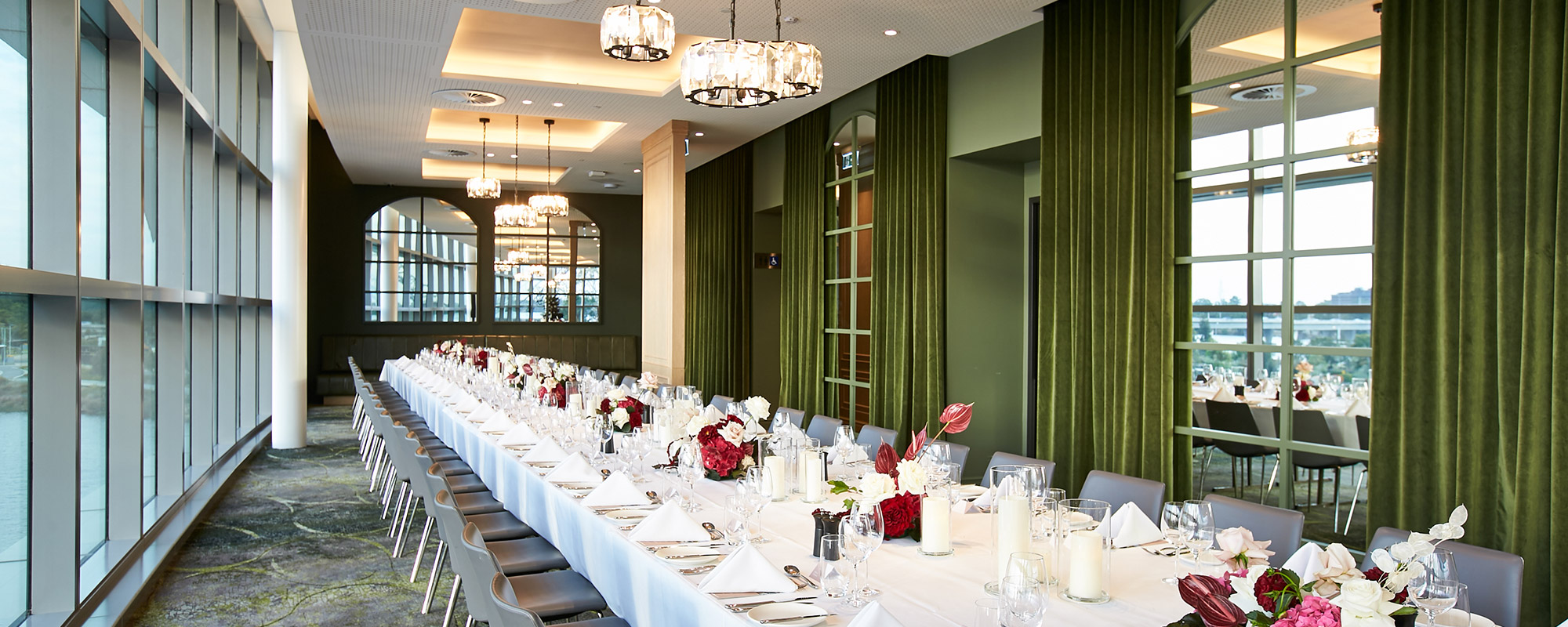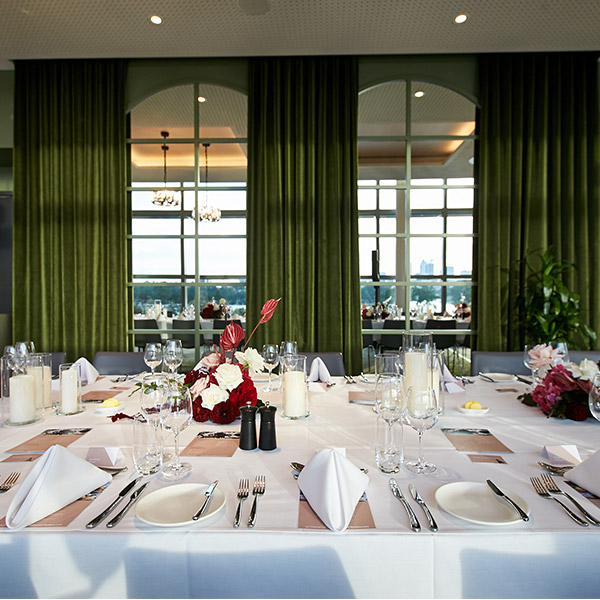 This luxurious space offers unrivalled river and city views and is perfect for high-end events including wedding receptions. Situated just outside the stadium on the level 1 concourse is the stunning Goodwood restaurant. Offering unrivalled water and city views and a decadent fit-out with crystal chandeliers and velvet finishes, this luxurious space is perfect for high-end events including wedding receptions.